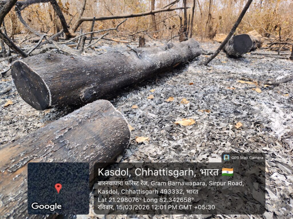 रायपुर।18.3.2026 छ.ग.राज्य वन विकास निगम के बारनवापारा परियोजना मंडल के रवान परीक्षेत्र के वन कक्ष क्रं.116,एवं 89 में दिनांक 14 मार्च 2026 को लगी भीषण आग की चपेट से उक्त वनक्षेत्र में कूप कटाई से उत्पादित लाखों रुपए की निगम की बेशकीमती वनोपज सागौन लट्ठा,बल्लीयां जलाऊ चट्टा,के साथ मिश्रित प्रजाति के भी अनेक लट्ठा,बल्लीयां,जलाऊ चट्टा,की थप्पीयां,भी जलकर कोयले व राख में तब्दील होने पर रवान परीक्षेत्र में इन दिनों हड़कंप मची हुई है। जिससे अब स्थानीय ग्रामीणों में निगम के रवान परीक्षेत्र का नेतृत्व करने वाले अफसर के खिलाफ विरोध के बादल मंडराने लगे हैं लोग अब खुलकर सामने आकर निगम के रवान परीक्षेत्र के प्रोजेक्ट रेंज अफसर हिरऊ राम पैंकरा के काले कारनामे को उजागर करने सामुहिक आंदोलन करने की तैयारी में है