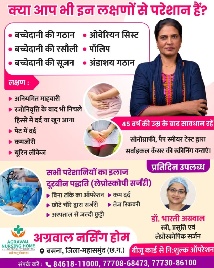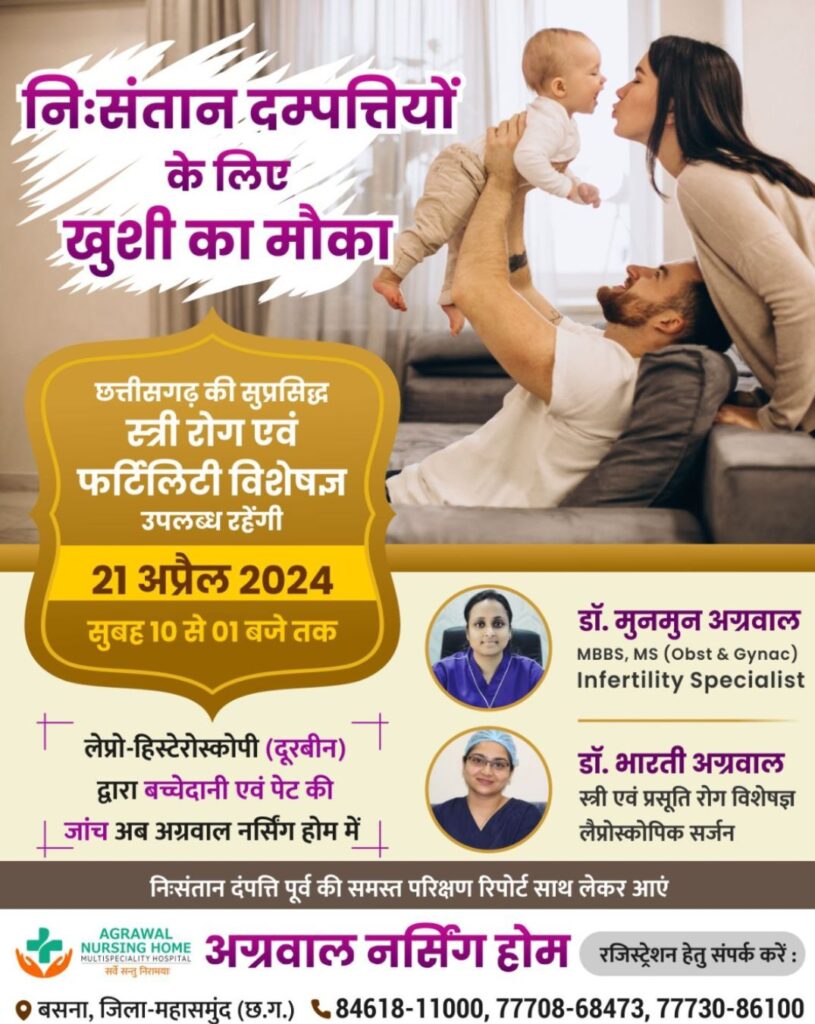 बसना/(छत्तीसगढ़ सृजन)महासमुन्द जिले में सेवाभावी हास्पीटल के नाम से जाना जाने वाला अग्रवाल नर्सिंग होम बसना में आज दिनांक 18 अप्रैल को नवजात शिशु एवं बच्चों का निःशुल्क सर्जरी शिविर का आयोजन किया गया ।