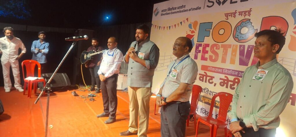 महासमुंद/छत्तीसगढ़ सृजन 21अप्रैल 2024/ जिले में मतदाताओं को मतदान के प्रति जागरूक करने अनोखी पहल की जा रही है। फूड फेस्टिवल के माध्यम से मतदाताओं तक संदेश पहुंचाने का अनोखा आयोजन किया जा रहा है। इसी कड़ी में जिला प्रशासन द्वारा मतदाताओं के बीच ‘‘मेरा वोट, मेरी पहचान, शत प्रतिशत करना है मतदान’’ जागरूकता का संदेश पहुंचाने स्थानीय बी.टी.आई. रोड स्थित चौपाटी में तीन दिवसीय फूड फेस्टिवल 19 से 21 अप्रैल संध्या 5ः00 बजे से रात्रि 10ः00 बजे तक आयोजित किया जा रहा है। आज दूसरे दिन फूड फेस्टिवल में लोगों की जबरदस्त भीड़ उमड़ी। लोग कार्यक्रम का लुत्फ उठाने लाइन में खड़े होकर भीतर प्रवेश कर रहे थे।