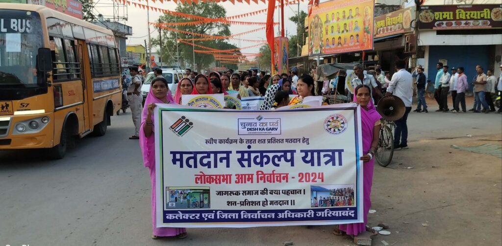 गरियाबंद/छत्तीसगढ़ सृजन) 23 अप्रैल 2024/ लोकसभा निर्वाचन 2024 के अन्तर्गत 26 अप्रैल को जिले में मतदान होगा। लोगो में मतदान के प्रति जागरूकता उत्पन्न करने एवं मतदान के प्रतिशत में वृद्धि किये जाने के लिए कलेक्टर श्री दीपक कुमार अग्रवाल के निर्देशानुसार एवं मुख्य कार्यपालन अधिकारी जिला पंचायत श्रीमती रीता यादव के मार्गदर्शन में जिले में विभिन्न मतदाता जागरूकता अभियान चलाया जा रहा है।