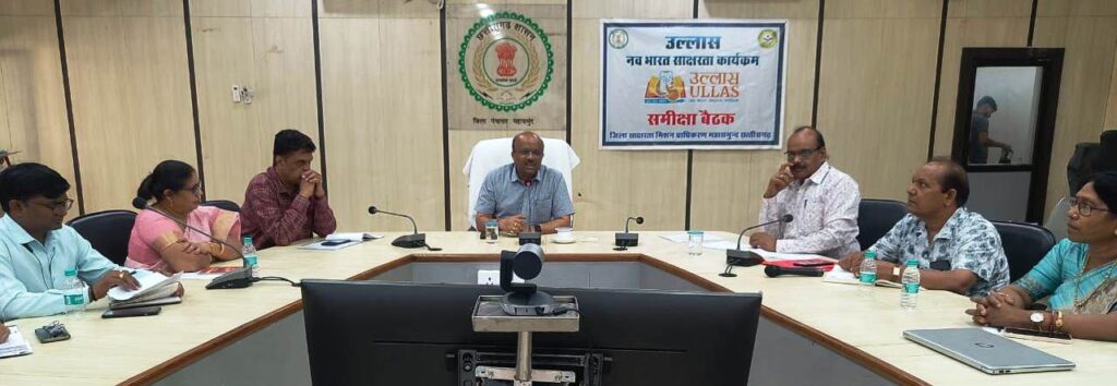 महासमुंद(लोचन चौहान) 18 जून 2024/ ‘‘उल्लास नवभारत साक्षरता कार्यक्रम‘‘ के सफल क्रियान्वयन के लिए कलेक्टर एवं अध्यक्ष जिला साक्षरता मिशन प्राधिकरण श्री प्रभात मलिक के मार्गदर्शन में मुख्य कार्यपालन अधिकारी जिला पंचायत एवं उपाध्यक्ष जिला साक्षरता मिशन प्राधिकरण श्री एस. आलोक की अध्यक्षता में जिला पंचायत के सभाकक्ष में समीक्षा बैठक आयोजित किया गया। मुख्य कार्यपालन अधिकारी जिला पंचायत श्री एस. आलोक ने समस्त बीईओ, बीआरसीसी, नोडल अधिकारी को समय सीमा के भीतर ग्राम प्रभारियों द्वारा सर्वे, वीटी चिन्हित कर कार्य पूर्ण एवं उल्लास ऐप में ऑनलाइन पंजीयन करने तथा स्कूल यूजर/सर्वेयर यूजर चयन का कार्य 30 जून 2024 तक पूर्ण करने निर्देशित किए। उन्होंने विकासखंड को दिए गए लक्ष्य की पूर्ति के लिए सर्वे को पूर्ण करने कहा। ‘‘नवभारत साक्षरता कार्यक्रम‘‘ के घटक मुलभूत साक्षरता एवं संख्यात्मकता एवं अन्य महत्वपूर्ण घटक जीवन कौशल, व्यावसायिक कौशल विकास, बुनियादी शिक्षा (समानता), सतत शिक्षा, के साथ-साथ वित्तीय साक्षरता, डिजिटल साक्षरता, बुनियादी कानूनी साक्षरता, स्वास्थ्य व स्वच्छता साक्षरता, जैसे क्षेत्रां में कार्य के लिए उल्लास एप के माध्यम से ग्राम स्तर पर सर्वे कार्य के लिए निर्देश दिए।