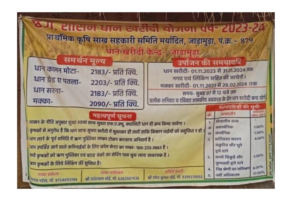 महासमुन्द(लोचन चौहान)20 जून 2024/ ग्रामीण सेवा सहकारी समिति जाड़ामुड़ा में फर्जी रकबा बढ़ाकर धान खरीदी किए जाने की शिकायत को लेकर जांच टीम गठित की गई है। टीम द्वारा उक्त प्रकरण की जांच की गई है। तत्पश्चात फर्जी रकबा बढ़ाकर धान खरीदी करने संबंधी शिकायत की प्रथम सूचना रिपोर्ट पुलिस थाना बसना मे दर्ज कराई गई है।